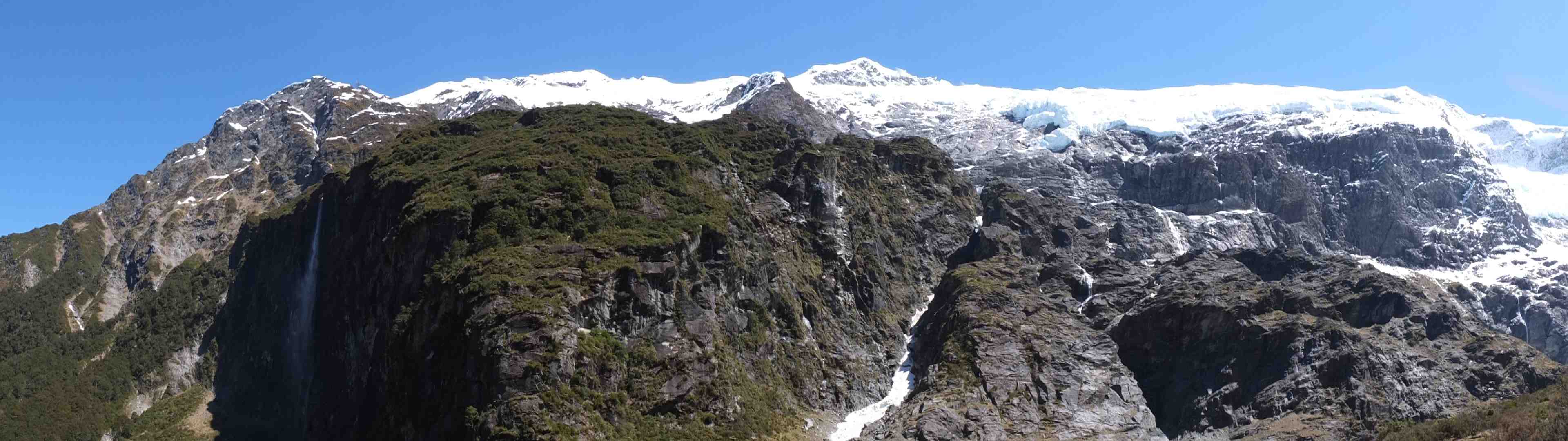 Une longue randonnée nous attend, et mes petites jambes seront mises à rude épreuve, pour atteindre le Rob Roy’s Glacier Lookout, qui offre une vue stunning (à vos dicos) sur les monts environnants. Les avalanches de séracs se succèdent dans un fracas assourdissant, et nous nous étonnons que le plus haut pic ne dépasse pas les 2700m d’altitude. Il y a vraiment un décalage de 1000m entre ces alpes et les nôtres, à paysage comparable!!!
